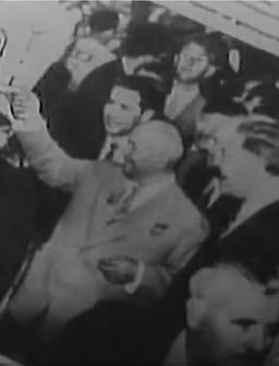 Koosolekul puuvillakombinaadis Balti Manufaktuur arutatakse Nikita Hruštšovi visiidi tulemusi Ameerika Ühendriikidesse.