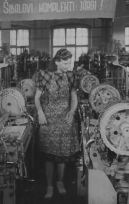 Võistluste avamine ja kangrud töötamas puuvillakombinaadis Balti Manufaktuur.