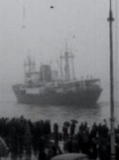 Ferryboat "Nord Estonia" belonging to the Swedish-Estonian ship company at the Stockholm Cruise Port on June 20, 1990. Helga and Laine Nõu with their luggage before the trip to Estonia.
