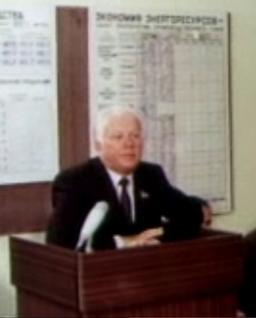 ELKNÜ XX kongress: NLKP Keskkomitee peasekretär Mihhail Gorbatšov ja ELKNÜ Keskkomitee esimene sekretär Arno Allmann kongressi kõnetoolis. Tallinna noorte elamukompleks Pääskülas, Kadrina EPT noorte seisukoht fosforiidiküsimuses.