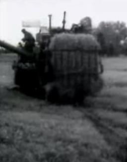 Viljakoristus Tartu rajooni Arengu sovhoosi liigniiskel põllul roomikutega täiustatud kombainiga SKG-3.