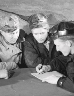 Eesti Põlevkivi Kukruse kaevanduse läbindajate brigaad töötamas.