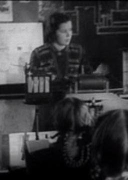 Johannes Lauristin kõneleb ENSV Ülemnõukogu istungite saalis märtsis 1941. Naised uutes ametites: trammijuht, vedurijuht, ettevõtte direktor.
