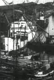 Laevad Tallinna puusadamas. Küttepuude lossimine, saagimine ja laadimine vankritele.