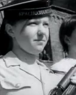 Aleksandr Matrossovi nime andmine Tallinna 25. Keskkooli pioneeride polgule Sputnik, pioneerid tutvuvad sõjatehnikaga.