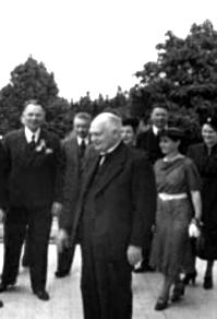 Eesti Vabariigi XX aastapäeva suvepidustustele ja XI üldlaulupeole saabunud väliseestlased külastavad presidenti Oru lossis 28. juunil 1938. aastal.