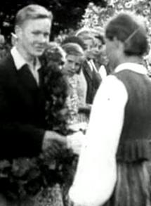 Eesti maanoorte võistlused käsilüpsis, kraavikaevamises ja kartulikoorimises. Põllutöökoja esimees A. Jürima autasustab võitjaid.