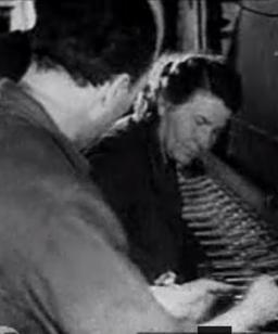 88-aastane Kreenholmi Manufaktuuri endine montaažimeister Jaan Udrik õpetab noortöölisi aprillis 1941.